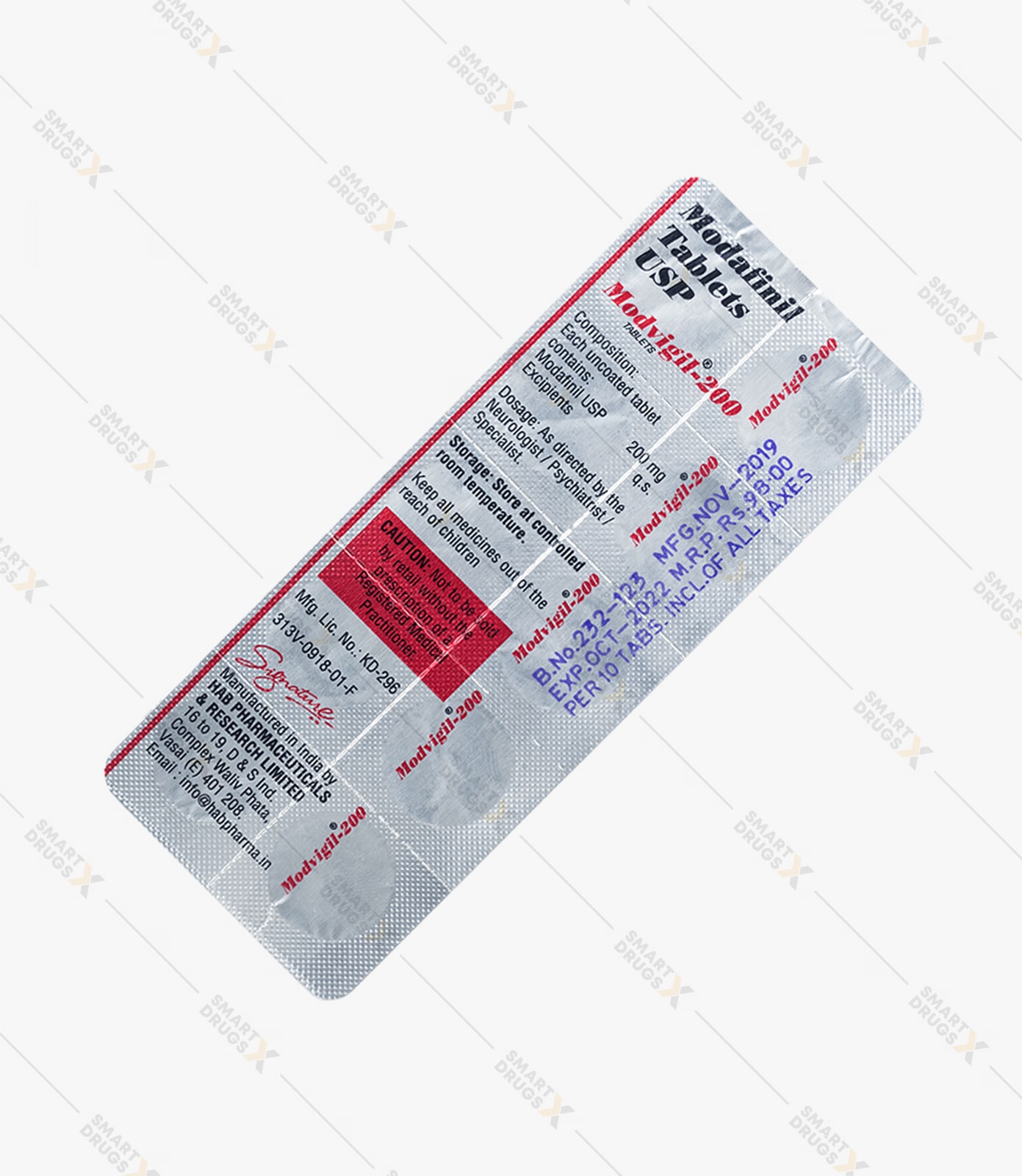 Modalert is sold in blister packs containing 10 tablets per strip.