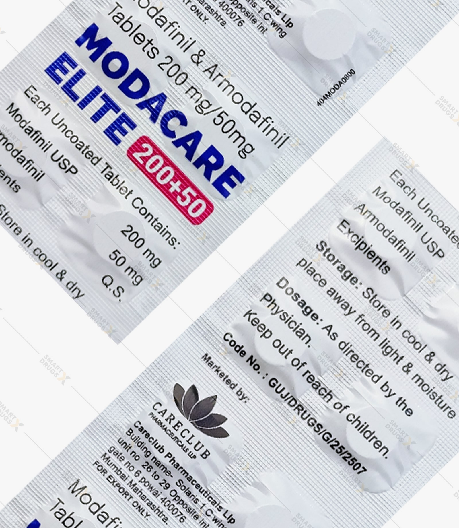 Modacare Elite 200 mg + 50 mg® is a next-generation cognitive enhancer, uniquely formulated with 200 mg of Modafinil and 50 mg of Armodafinil — two of the most effective and well-researched compounds for boosting alertness, productivity, and mental stamina.